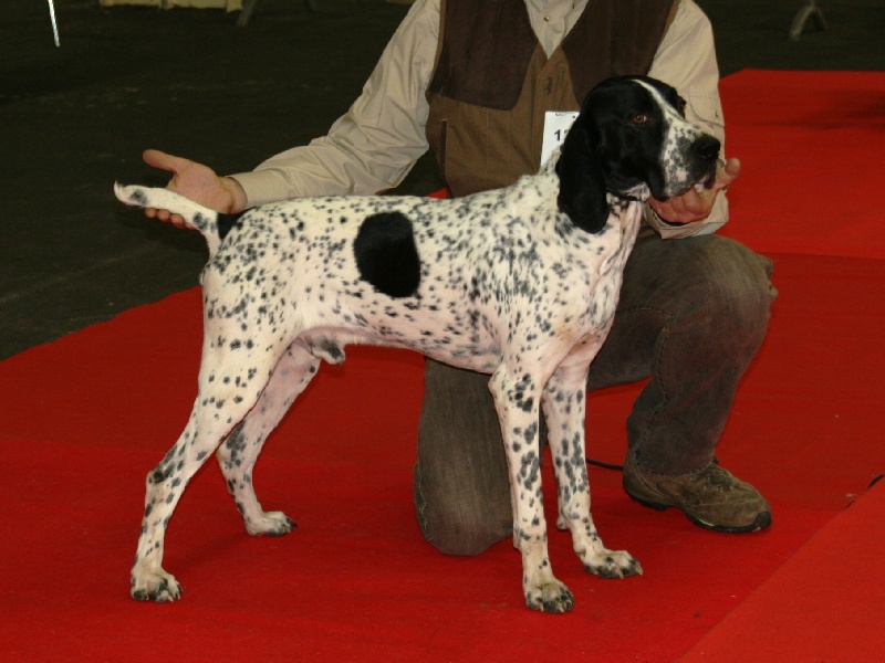 exc dent complete-sujet harmonieux dans sa construction/exc ossature-le dessus se tient se bien le rein est solide/la poitrine est bien descendue de bonne longueur la cote est galbée très légèrement ouverte. exc angulations - la tête est puissante, masculine légèrement chargée en joue, commissures très marquées, l’œil est un peu arrondi, un peu claire ce qui nuit a la race, se déplace très bien, serre légèrement l’arrière - chien très élégant.